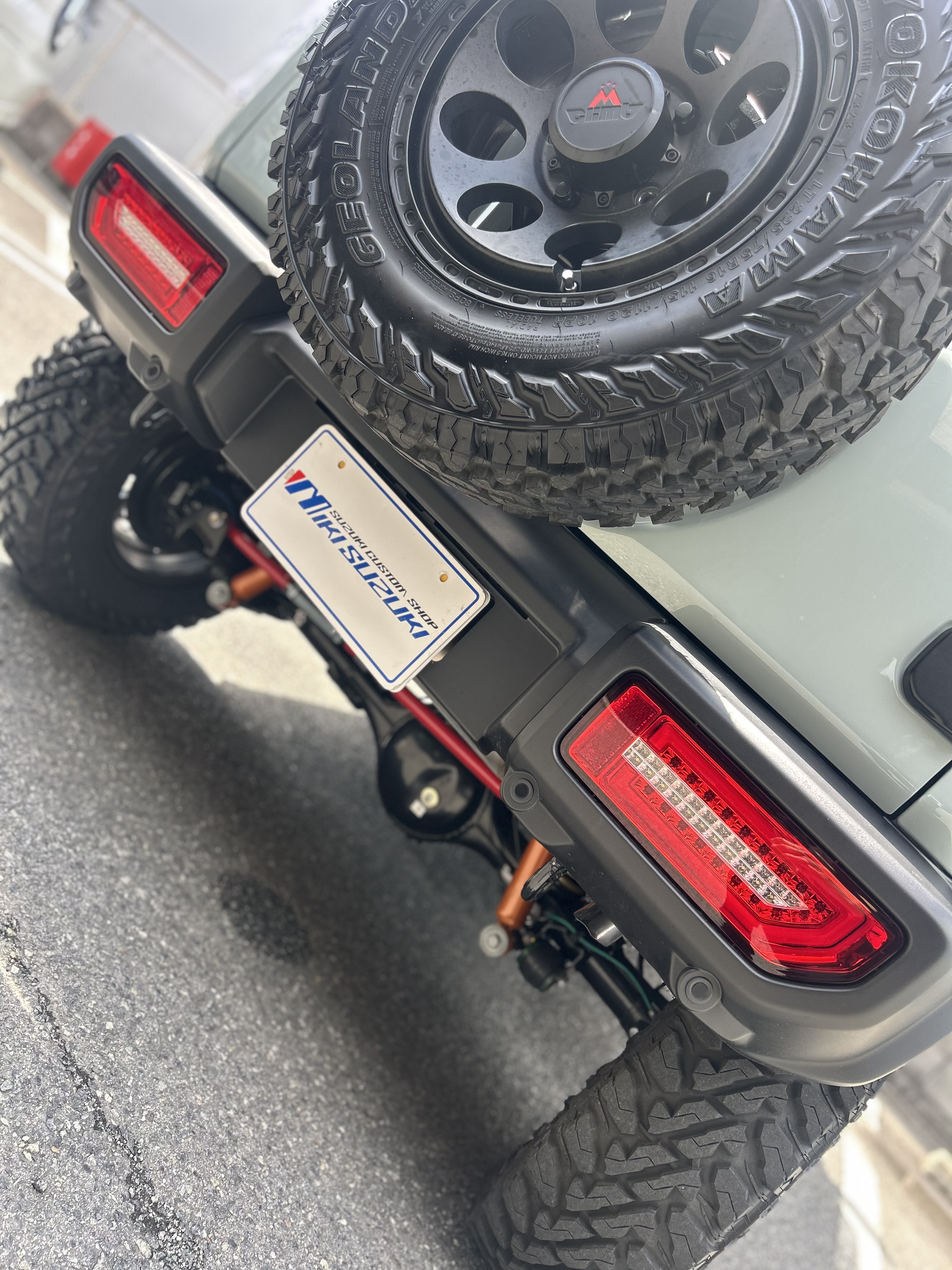 タイヤはオフロードタイヤでタフな印象を持ちつつ、アルミホイールは三木スズキオリジナルの ”アストロDC 16インチアルミホイール” でさらなるカッコよさを演出しております