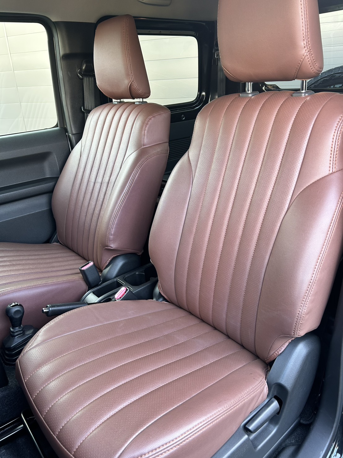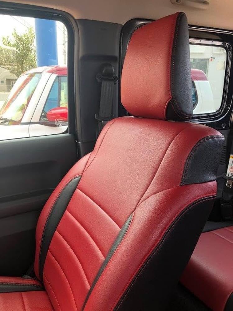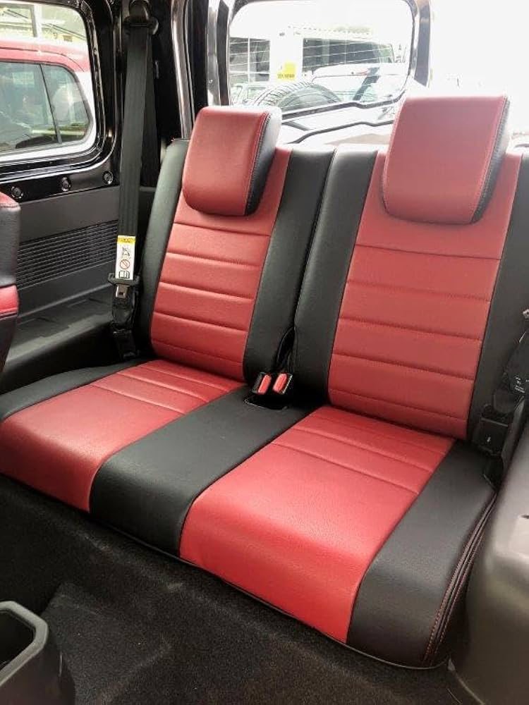 座り心地や汚れにくさなど試行錯誤して作っており、(アカ×クロ)・(ブラウン)・(ブラック)の3色展開で前後工賃込みで¥55,000と特価価格になっております