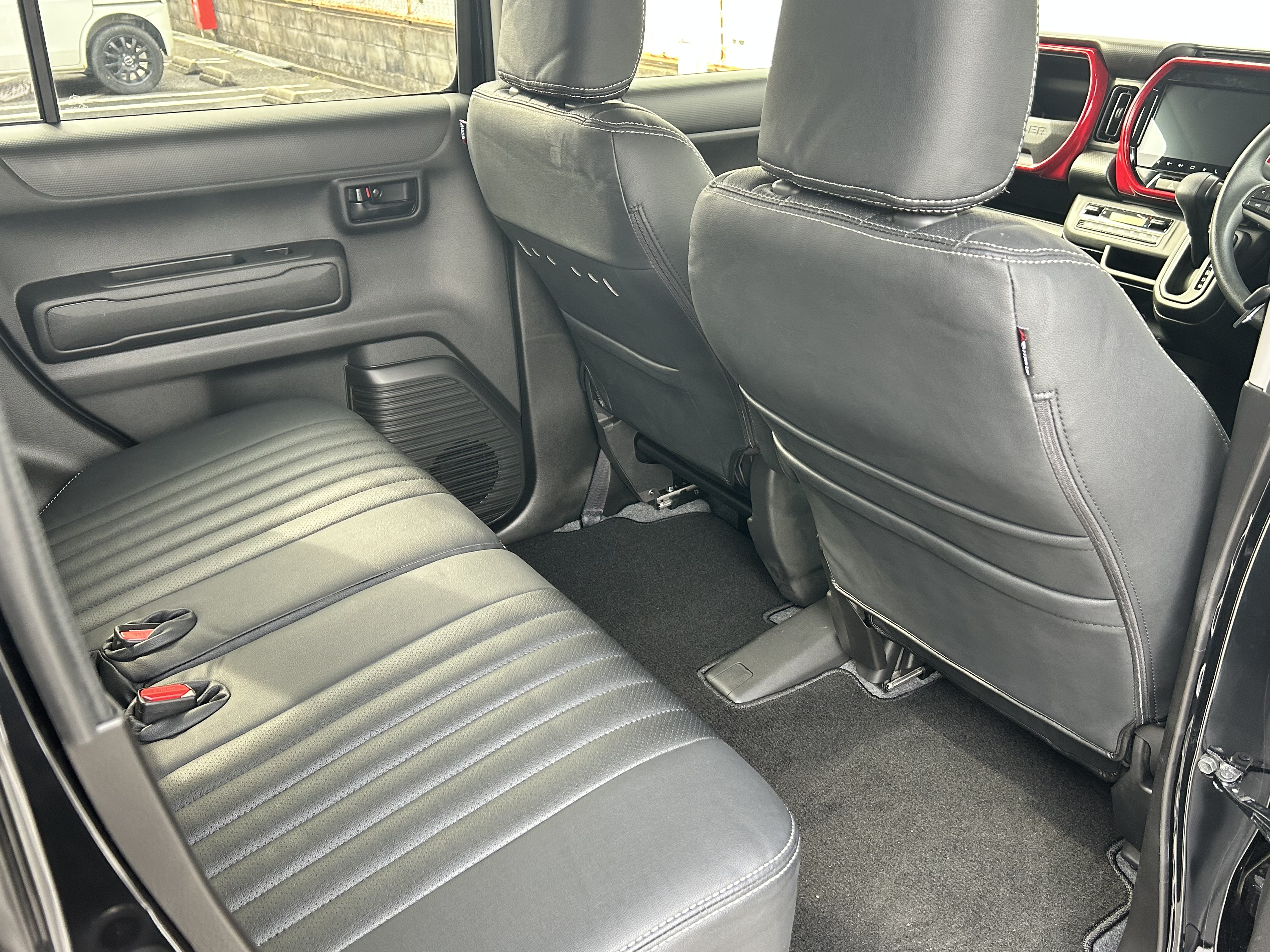 弊社オリジナルのペイントであるルーフ&ミラーのみワインレッドにした赤×黒コンプリート車になります